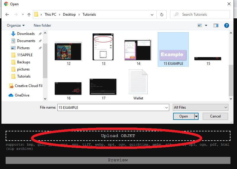 Чтобы отчеканить NFT, кликните на три полоски и выберите OBJKT